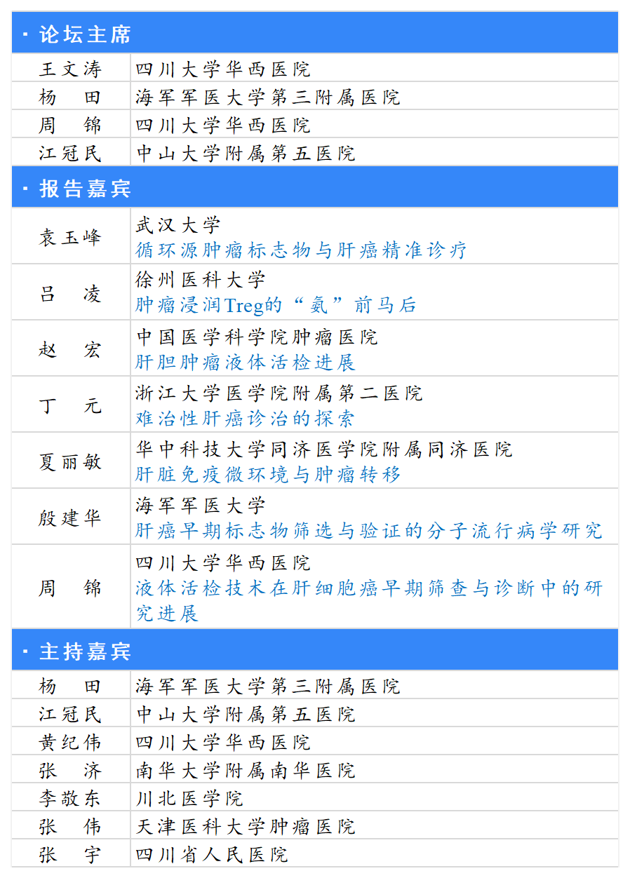 为展示肝癌标志物研究领域的最新研究成果,探索未来发展方向,搭建业内专家交流平台,助力肝癌标志物研究领域发展,4月25日下午,由四川大学华西医院王文涛教授海军军医大学第三附属医院杨田教授、四川大学华西医院周锦教授和中山大学附属第五医院江冠民教授共同担任论坛主席的“肝癌标志物论坛” 将在成都空港国际会议中心举行。