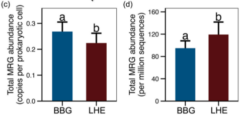 基于细胞标准化的相对丰度表明,北部湾沉积物的MRG水平显著更高;而基于ppm的绝对丰度却显示,辽河口沉积物的MRG水平明显更高。
