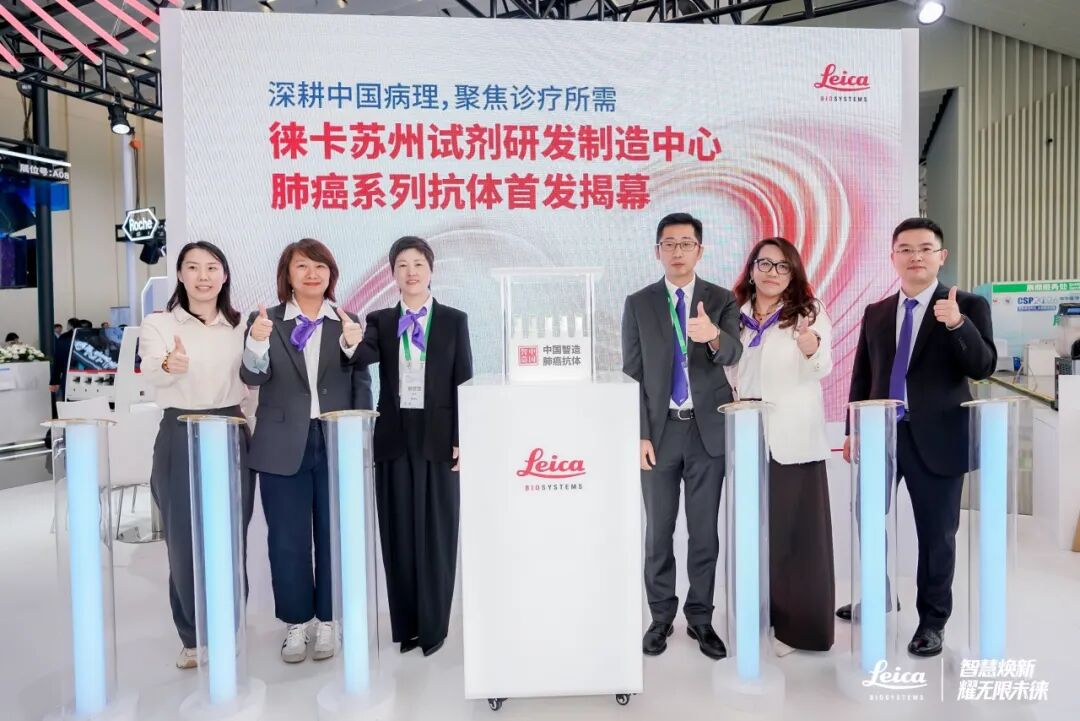 本次会议上,徕卡还为其本土化肺癌系列抗体举行了隆重的首发揭幕仪式,标志着徕卡本土化产品布局再获重要突破。该系列抗体由徕卡苏州试剂研发制造中心生产,是完美适配BOND全自动染色平台的“即插即用”型抗体,可无缝接入BOND工作流,从源头筑牢病理诊断的精准根基,为临床肺癌精准诊断提供高效、可靠的解决方案。
