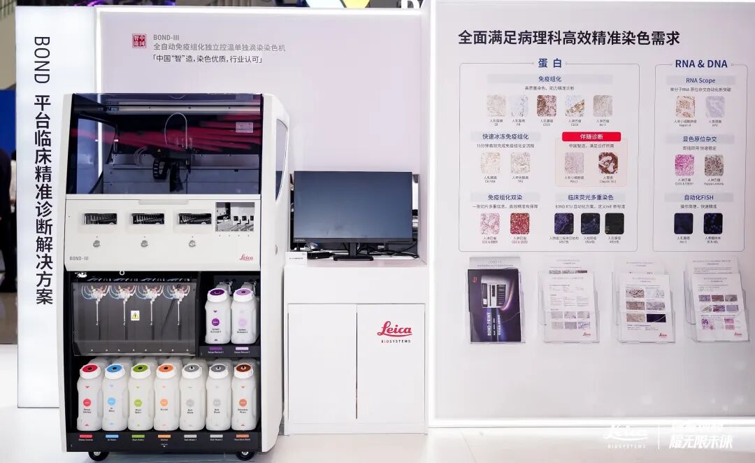 本次展会上,徕卡BOND平台肿瘤精准诊疗新矩阵同步精彩亮相。BOND-PRIME和BOND-III作为深耕中国病理领域多年的核心产品,凭借极致稳定的性能、高质量的染色效果、灵活的应用方式,成为广大病理科室信赖的合作伙伴,有效解决了病理科日常工作中免疫组化染色质控与标准化的核心痛点,为精准诊断提供了可靠保障。
