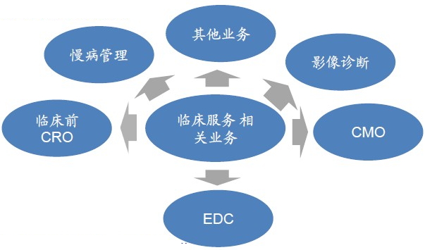 泰格医药临床试验领域 作为国内规模最大的临床CRO企业,泰格医药提供的服务主要包括临床试验、注册申报、生物统计三大块。其中临床试验技术服务是临床CRO的主营核心业务,包括试验方案设计报告撰写、临床监查、项目管理、质量保证、药物安全管理等工作,年收入达1.18亿元,占到泰格收入的60%以上。这一块是临床CRO的主体,它确保了公司大部分业绩,是各大竞争者的主战场。 泰格医药的业务模式通过连接了医药产业内的各方资源,包括三甲医院、医生、研发创新企业、新药评审机构等。过去开发利用目前只局限于CRO业务本身。