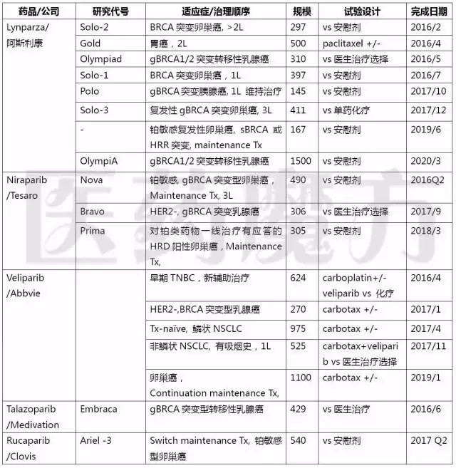 来源:EvaluatePharma;发布时间:2016/3 PARP抑制剂