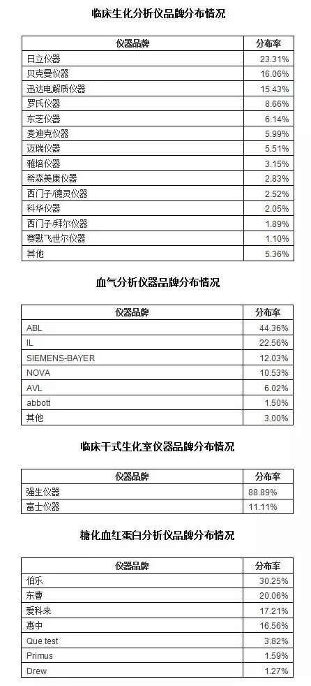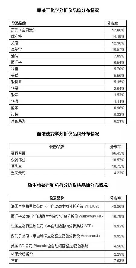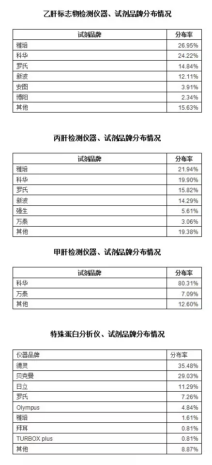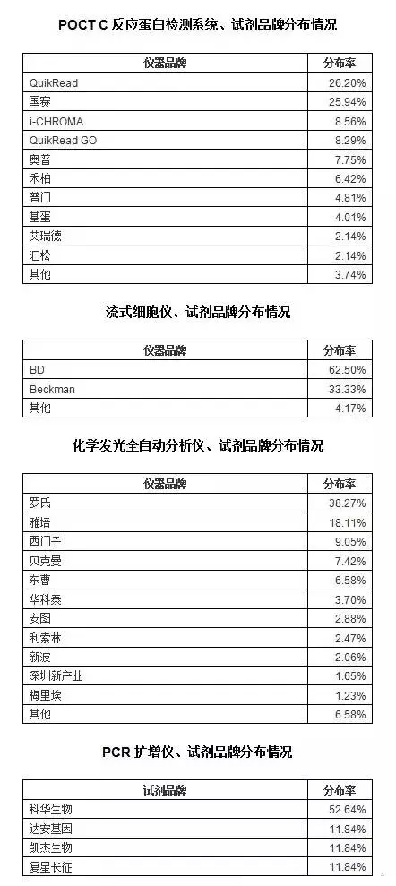 希望通过以下各组数据分布情况,能给大家统计和分析上海市乃至全国检验设备、试剂品牌情况提供参考!