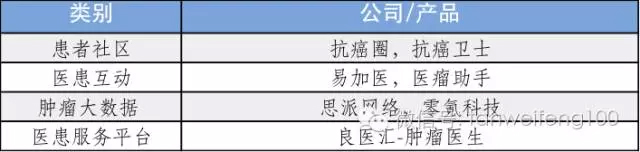 随着国内癌症保险相关领域研究的逐步深入,为癌症保险产品的发展提供了扎实的基础,同期,国民大众对于抗癌防癌的医疗保障意识和需求逐步加强,国内防癌险呈现出良好的发展势头。 慈善赠药 为提升癌症治疗水平,扶持癌症先进治疗技术,让更多的癌症患者可以接受更加先进有效的治疗方法,中华慈善总会等基金会都设立为民大病救助基金,该类基金以为罹患癌症等重大疾病人群提供治疗援助为宗旨,持续关注在癌症等重大疾病治疗领域中先进有效的治疗方法,与药物的生产商一起推进了的慈善赠药计划使更多患者可以得到有效治疗,包括格列卫,赫赛汀、多吉美、索坦、凯美纳,易瑞沙,特罗凯等20余个分子靶向药物在中国都开展了慈善赠药项目。当患者购买药品达到一定数量后,对患者进行评估,如果患者继续服用该药物有效且满足相应慈善赠药条件,则可以获得由企业免费提供的该药品后续赠药。在医保和商业保险的覆盖之外,慈善赠药一定程度上解决了肿瘤患者支付的问题。 肿瘤领域的互联网公司 在肿瘤领域,优质医生资源与患者共享信息不匹配,肿瘤医疗资源匮乏且分配不均,诊前咨询和诊后随访的资源匹配度上显现的问题依旧突出,患者和患者家属一直面临看病难的困境。肿瘤服务相关的市场潜力巨大,患者付费意愿高,创业空间丰富,在移动医疗各个领域异军突起的年代,肿瘤作为一个重度垂直领域已经逐渐开始在互联网施展拳脚,其中患者社区,医患互动,肿瘤大数据,医患服务平台这几个领域发展尤其迅速,具体类别和代表公司/产品如下表所示。