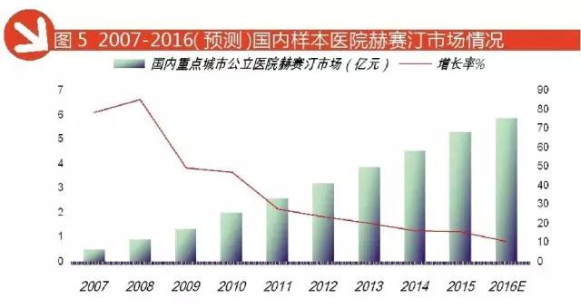 曲妥珠单抗: 赫赛汀独占国内市场 曲妥珠单抗由美国基因泰克公司开发成功,1998年9月25日获得美国FDA批准用于临床,商品名为Herceptin(赫赛汀)。罗氏并购基因泰克后,已是罗氏qixia的单抗药物。曲妥珠单抗的靶向性生物基因疗法与普通的放疗、化疗、激素治疗乳腺癌相比,可通过基因选择针对性地杀伤恶性肿瘤细胞,而不影响人体正常组织细胞的生存。 曲妥珠单抗是一种重组DNA衍生的人源化单克隆抗体,是具有代表性的抗肿瘤靶向抗体药物。该药能选择性地作用于人表皮生长因子受体-2的细胞外部位,与其受体特异性结合,影响生长信号的传递;并促进受体蛋白的内在化降解,通过聚集免疫细胞攻击并杀死肿瘤细胞,临床用于晚期乳腺癌的治疗。目前,欧盟已批准赫赛汀与多西他赛联用,作为人类表皮生长因子受体2(HER2)呈阳性的转移性乳腺癌的一线治疗联合用药。 2002年,曲妥珠单抗已引入我国医院市场,以商品名赫赛汀上市。目前国内曲妥珠单抗市场由赫赛汀独占。 据HDM系统数据,2016年1-3季度国内重点城市公立医院曲妥珠单抗用药金额达4.41亿元,预测2016年我国重点城市公立医院曲妥珠单抗用药金额达5.88亿元,同比上一年增长了11.07%。赫赛汀药物毒性低,治疗效果表达明显,生存时间延长,对提高晚期癌症患者生活质量具有积极意义,是带动抗肿瘤单抗市场增长的动力。