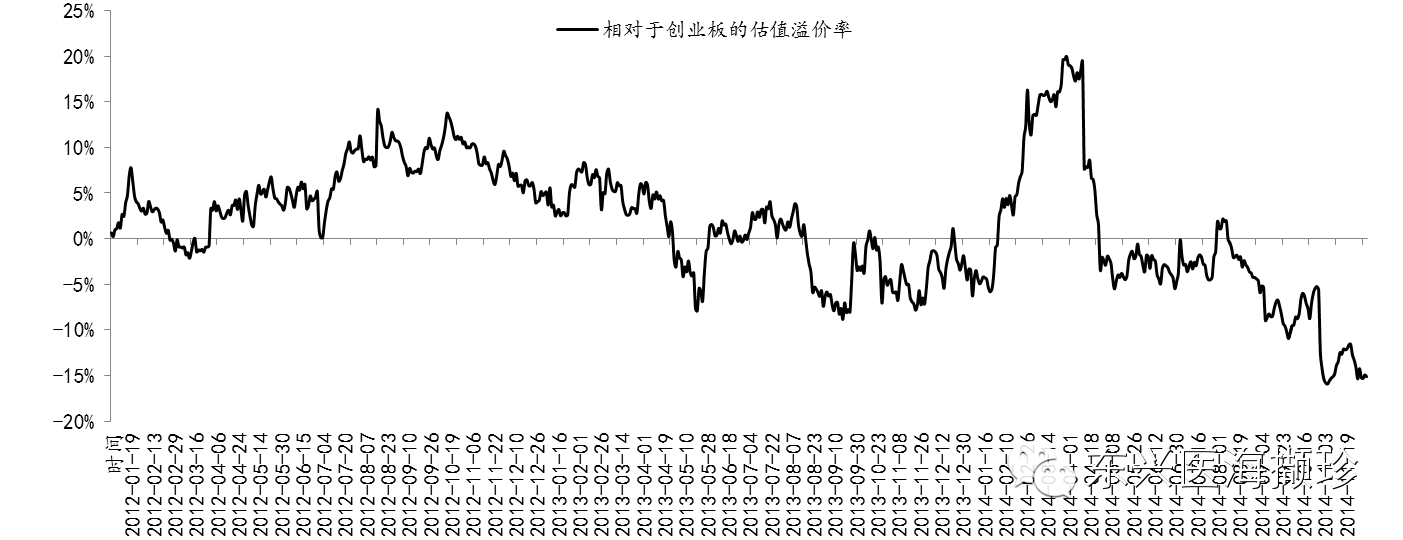 图表 8:IVD行业指数相对于创业板指数的估值溢价率