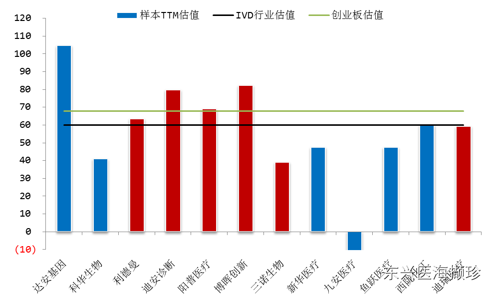图表 6:IVD指数样本估值(TTM)(蓝、红分别为中小板和创业板公司)