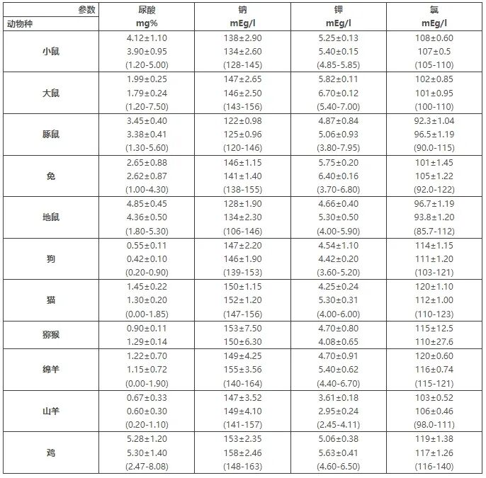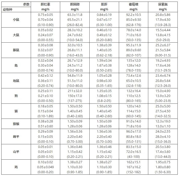 [分享] 干货分享 | 各种实验动物血清生化指标值【对照表】