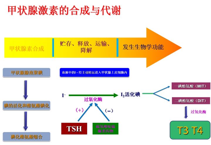 小桔灯提供了知识文库的服务,这周分享的是第八部分8.生化检测,提到即时检测就必须要提及当前生化检测常见检测项目—甲状腺激素。 甲状腺激素的生理作用是什么? (一) 产热作用 甲状腺激素促进氧的消耗,增加产热作用。甲亢患者多怕热,甲减时耗氧率减少,患者怕冷。甲状腺激素的产热作用,可能由于激素首先诱导细胞膜上Na-K泵(Na-K—ATP酶)的合成,线粒体的能量代谢活动增强,氧化磷酸化作用加强,于是,氧耗量和产热量增加。 (二)蛋白质代谢 甲状腺激素的基本作用是诱导新的蛋白质包括特殊酶系的合成。但激素过多时,蛋白质分解,呈负氮平衡。甲状腺激素也是胎儿和产后高级神经和全身组织生长发育所必需,儿童期缺乏时,生长发育停顿,智力显著减退,但过量时由于过多蛋白质分解也可抑制生长。 (三)脂肪代谢 甲状腺激素促进脂肪合成和降解,以降解较明显。甲状腺激素促进胆固醇浓度降低,甲减时血胆固醇常增高,主要由于胆固醇分解减慢。对甘油三脂和磷脂代谢的影响也基本相同。甲状腺激素还可通过增强腺苷环化酶cAMP系统的影响和组织对儿茶酚胺、生长素等脂肪动员激素的作用而促进脂肪分解。 (四)糖代谢 甲状腺激素可自多方面影响糖代谢。主要通过调节其他激素特别是儿茶酚胺及胰岛素对糖原的作用。小剂量激素增加糖原合成,大剂量则促进糖原分解。甲状腺激素尚可促进葡萄糖及半乳糖在肠道吸收,故口服葡萄糖后常出现高血糖,提示过多甲状腺激素可诱发或加重糖尿病。 (五) 维生素代谢 甲状腺激素过多时,组织中维生素B1(硫胺)、维生素B2(核黄素)、维生素B12和维生素C的含量均减少,维生素转化为辅酶的能力减弱。脂溶性维生素A、维生素D、维生素E在组织中含量也减少。甲状腺功能减退时体内胡萝卜素合成维生素A下降,而在组织中积聚,形成皮肤特殊黄色,但巩膜不黄。 (六)水和盐代谢 甲状腺激素具有利尿作用。在甲减伴黏液性水肿时,细胞间液增多,自微血管漏出的白蛋白和黏蛋白含量也增多,补充甲状腺激素后可纠正。甲状腺激素尚可兴奋破骨细胞和成骨细胞,导至骨质脱钙,尿钙,磷排泄增加,血浓度则一般正常或稍高,血碱性磷酸酶可增高。 (七)神经肌肉系统 甲状腺激素对大脑发育和功能活动有密切的关系,过多和过少均可引起精神神经症状,脑电图出现异常。甲状腺激素缺乏如发生在妊娠早期,胎儿脑部生长成熟受影响,其功能损害常不可逆转,有聋哑、痴呆等神经精神症状;如发生在妊娠晚期,则出生后治疗越早,智力改善的可能性越大。甲状腺激素过多时,肌肉神经应激性增高,震颤,尚可由于ATP及磷酸肌酸形成减少,肌酸呈负平衡等各种原因发生肌肉病变。甲减时,全身肌肉体积增大,但收缩缓慢。 (八)生长和发育 甲状腺激素除对脑和肌肉的发育有重要作用外,对全身的生长和发育、组织的成熟以及多数的维生素和激素的转换均有明显影响。对细胞的部分作用主要通过线粒体水平,影响氧化代谢或通过细胞膜和内质网影响影响Ca-ATP酶的活性。 甲状腺激素的临床意义是什么? 1.甲状腺激素的临床应用 T4:全部由甲状腺分泌而来,60%左右与甲状腺结合球蛋白(TBG)结合,30%与甲状腺素转运蛋白(TBPA)结合,10%与白蛋白结合 T3:15%-20%甲状腺分泌,80%为T4在外周组织脱碘而来,血清中99.5%与TBG结合,T3不与TBPA结合 T3 、 T4 被水解后进入血液,99.98%的T4和99.8%的T3以非共价健与血浆蛋白结合,其余为0.02%的FT4、0.2%的FT3 。FT3、FT4是实际进入靶细胞与受体结合而发挥作用的激素物质。其正常值不受TBG(甲状腺素结合蛋白)浓度的影响,是反应甲状腺功能的灵敏指标。 ① TT4增高 见于甲亢、原发性胆汁性肝硬化、妊娠、应用雌激素或避孕药等。 ② TT4减低 主要见于甲减、缺碘性甲状腺肿、慢性淋巴细胞性甲状腺炎等。 ③ FT4增高 见于甲亢、多结节性甲状腺肿,诊断甲亢的灵敏度明显高于TT4。 ④ FT4减低 见于甲减、应用抗甲状腺药物、糖皮质激素等及肾病综合症。 ⑤ TT3增高 TT3是诊断甲亢最敏感的指标。同时,监测血清TT3、TT4对评价甲亢的治疗效果具有重要意义。 ⑥ TT3减低 甲减时,TT3减低不明显,有时甚至轻度增高。因此TT3不是诊断甲减的灵敏指标。 ⑦ FT3 |
