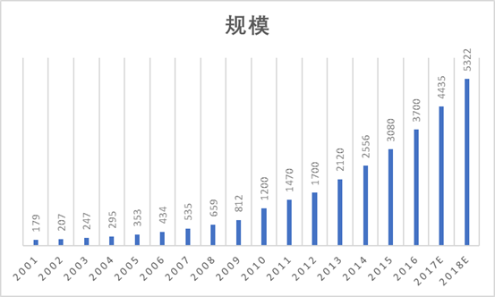 有多少医疗设备需要维修? 在中国产业信息网,我查到了2001年到2016年中国医疗器械市场规模如下表: