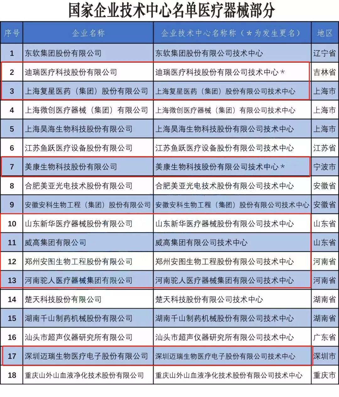 日前,国家发改委、科技部、财政部、海关、税总联合发布了2017-2018年(第24批)新认定及全部国家企业技术中心名单。 经审定,又有112家技术中心、10家分中心获得了国家企业技术中心及分中心资格。这其中,医疗器械部分中的IVD企业有8家,分别为迪瑞医疗、上海复星、美康生物、山东新华医疗器械、威高集团、郑州安图生物、河南驼人医疗器械、深圳迈瑞生物。(排名不分先后) 截至目前,经官方权威认证的国家企业技术中心一共达到1369家、分中心为77家,按照国家相关规定享受支持科技创新进口税收优惠政策。 在总共一千多家国家企业技术中心和分中心中,据统计,医药企业的数量超过了一百家,而IVD企业的数量则有8家。 以下为上榜械企的具体名单(标红为IVD企业): |