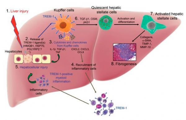 2018年8月30日讯 /生物谷BIOON /——所有组织发生损伤或者压力时都会产生炎症,炎症也是肝纤维化的关键过程。靶向慢性失控的炎症是防止肝损伤和纤维化进展的一种策略。而近日来自奥古斯塔大学的研究人员发现髓样细胞触发性受体1(TREM1),一个炎症放大因子会通过加剧肝脏炎症和肝纤维化而促进肝病进展。 图片来源;JCI 在肝脏中,TREM-1只在肝脏巨噬细胞和单核细胞中表达,而在四氯化碳诱导的慢性肝损伤和纤维化小鼠模型中,肝脏枯否细胞、循环单核细胞及单核细胞来源的巨噬细胞上高表达。TREM-1信号促使炎前信号因子产生并使炎症细胞滞留在损伤部位。 清除TREM-1可以降低肝损伤、炎症细胞浸润以及肝纤维化。而利用表达TREM-1的枯否细胞重建的TREM-1缺陷的小鼠却会维持招募炎症细胞和肝损伤。 研究人员还发现肝纤维化病人纤维化区域浸润的TREM-1阳性的枯否细胞和单核巨噬细胞数量显著增加。 总体而言,这些研究结果表明TREM-1在肝损伤和肝纤维化中扮演重要角色,TREM-1是枯否细胞激活的关键调节因子,会加剧慢性肝脏炎症反应、活化肝卫星细胞,因此该研究揭示了一种促进肝纤维化的新机制。(生物谷Bioon.com) 参考资料: Anh Thu Nguyen-Lefebvre et al, The innate immune receptor TREM-1 promotes liver injury and fibrosis, Journal of Clinical Investigation (2018). DOI: 10.1172/JCI98156. |