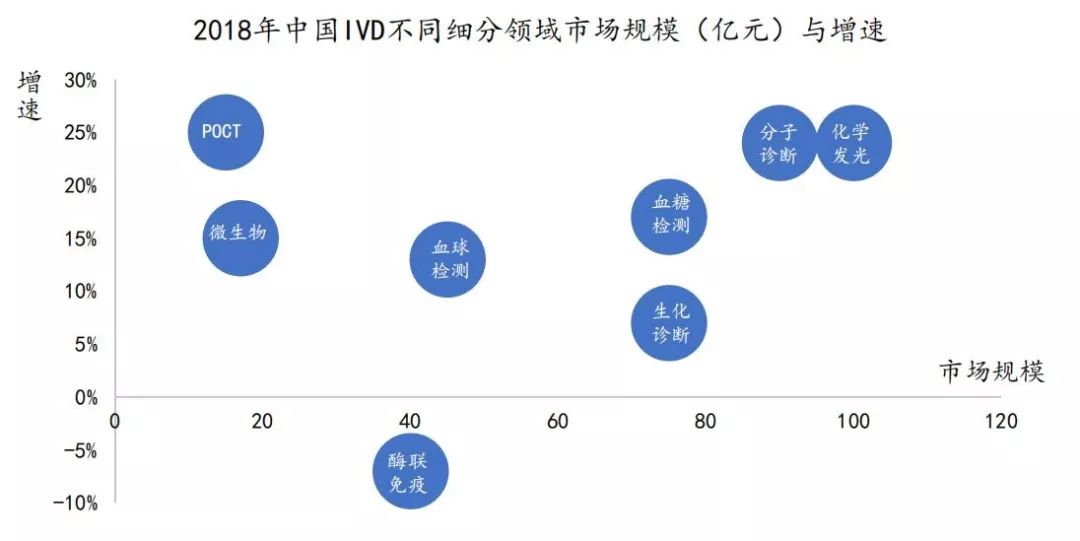 我国IVD产业经过40多年的发展,随着技术的迭代升级,已经形成了诸多的细分行业,其中以化学发光为主流技术,市场的年增速达到了20%以上,而之前占据市场主流的酶联免疫技术正在逐渐被取代。