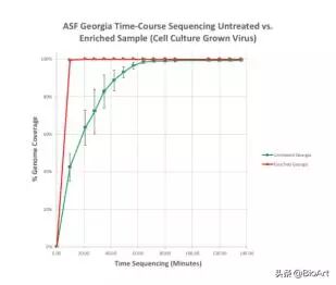在评估MinION平台用于流行病学评估的快速鉴定的可行性方面,作者使用ASF -FAST软件分析了四株遗传学上不同的ASFV分离株的序列数据。他们发现在测序运行开始的10分钟内,所有富集样本90%的基因组均得到了解析。使用新鲜的和冻干血液样本,全基因组序列可在约4小时内获得。
