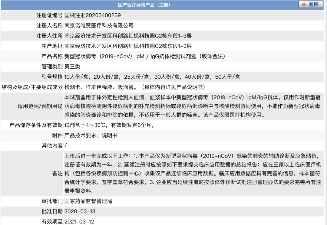 3月14日,国家药品监督管理局通过了南京诺唯赞和珠海丽珠试剂2家IVD企业的新冠状病毒检测试剂盒,此次产品的获批上市,扩大了快速检测试剂的供应,进一步服务疫情防控需要。