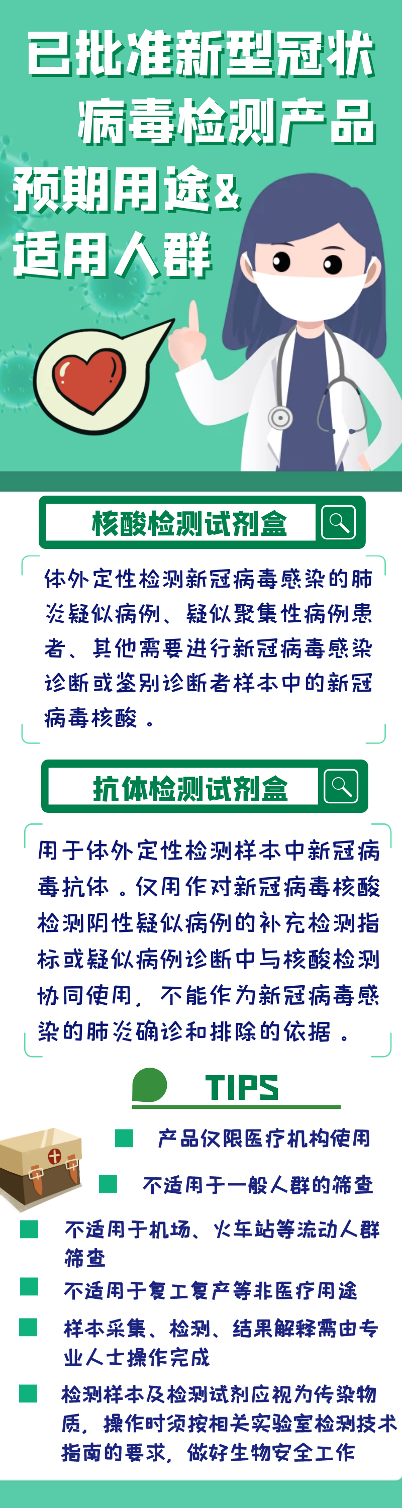 据统计,目前国内20家IVD企业22款新冠检测产品获得国家药监局批准注册上市,为防控疫情提供关键保障。这22款产品分为核酸检测和抗体检测两大类,那么这些产品有什么特点及用途呢?请看下图: