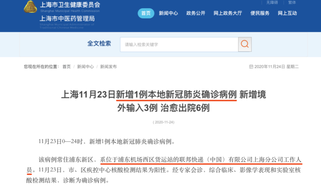 吴尊友指出,冬季所有国际运输环境都类似于冷链系统,“物传人”引发疫情 上海卫健委通报,有快递员感染新冠