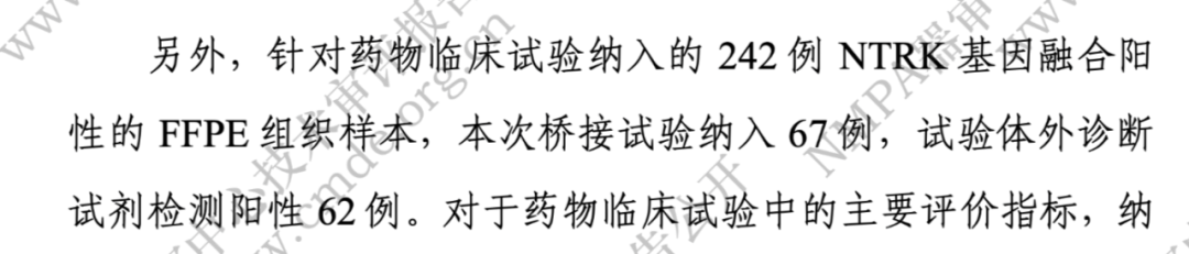 愿意去藏秘密,从某个角度看,也是好事情” 距离NTRK 1/2/3拿到注册证已经过去大半个月了。PS:这篇仅代表个人观点。如果我俩理解不一样,那么你是对的。欢迎留言区探讨。 通过7家临床研究中心(医科院肿瘤医院、安徽省立、青大附医、哈大附医、浙肿、川肿、辽肿)入组了2422例病例。其中101例NTRK阳性(NTRK1是44例、NTRK2是7例、NTRK3是50例)。与WES进行对比,阳性符合率98.02%,阴性符合率99.74%。对比当初MSI泛癌种伴随诊断的审评报告,藏的不是一星半点。*MSI审评报告肿列明了临床检测性能评价肿入组的阳性病例癌种分布这部分是通过与原研伴随诊断试剂(Foundation One)进行桥接来实现的。其中世和的试剂盒在其中的62例里检出了NTRK融合,阳性符合率92.54%。还是以MSI的审评报告为对照,那个报告中虽然只写了癌种没写分布:但因为它是和替雷利珠单抗同步开发的,而替雷利珠单抗的注册临床是公开数据,所以其实也相对于公开了。既然这次的审评报告里没写,那么我们只能合理的进行推测:NTRK审评报告里写的原药物临床试验总共是242例NTRK阳性,所以这个临床试验是恩曲替尼三个注册临床中的两个:ALKA和STARTRK-1,入组的是NTRK融合阳性的实体瘤成人患者。我盲猜世和拿到的桥接样本应该是那些例数相对较多的。PS:有朋友吐槽这67例的桥接样本量太小了,我必须帮CC同学说句话。“指导申请人了解审评标准和技术要求,鼓励医疗器械研究与创新,推动产业高质量发展”如果按照这个标准来评价这份NTRK 1/2/3的审评报告,只能说,离初衷差得很远。审评报告中附带了NTRK 1/2/3试剂盒的说明书,从15页开始到25页结束,总共11页。相比于PCR,NGS在NTRK融合检测上的最大优势是“可以检测未知融合”。这也是为什么NTRK的伴随诊断会选择NGS的原因。时至今日,全国很多省份依然没有专门针对NGS的收费条码,导至NGS不得不去“套用”PCR的收费条码。说明书中如果是“open”,也就是基因全长,会在具体落地医院收费时遇到很大的挑战。但如果说明书中列明很多位点,虽然看上去是NGS降级了,但反而在收费端有了更大的灵活性,可以自由组合出更多的价格。这不是世和的问题,而是医疗服务价格体系没有跟上技术发展的问题。只能说,这大概属于NGS行业的“非物质文化遗产”。虽然从行业发展的角度,我们当然希望审评报告内容越多越好、细节越丰富越好。“藏”的本质是希望拉大竞争优势,扩大领先时间,让友商注册同类产品的时间尽可能久一点。而从过去审评报告“应有尽有”,到现在审评报告“最小有效”:这说明至少在头部企业的眼里,一张新品类/新癌种的注册证是能建立竞争壁垒的game changer。另一个趋势则是“伴随诊断”的“头部企业垄断”开始初见端倪。这个获批的试剂盒同时也是正在注册中的再鼎医药奥凯乐®(瑞普替尼)以及威凯尔医药安瑞曲替尼(VC004)的原研伴随诊断试剂。过去的绝大多数NGS-CDx注册证,本质上都是针对存量药物、成熟靶点的注册。1. 大家的注册证挺趋同,来来回回就是那些靶点的排列组合但是到了“新靶点/新癌种”的CDx阶段,故事就不一样了。一个“首证”是能具备“垄断该靶点伴随诊断”的能力的——“能不能实现”是执行的事情,“能不能”是本质的事情。对于后续开发同类靶点的药企来说,选择一个已经获批的试剂盒去增加伴随诊断药物,相比于选择一个从零开始注册的试剂盒,优势是碾压性的:药厂不是任何一家企业的亲爹(呃,当然有特例),在ROI碾压的情况下,选择已经完成注册的试剂盒合作,几无悬念。漂亮国的组织伴随诊断几乎被Foundation One垄断,而血检伴随诊断也就F1 CDx liquid和Guardant 360CDx两家分食。“第一证”/“同品种首个”的价值,会被无限的放大。当然,像这种“列位点”的NGS行为艺术,真心希望这只是阶段性的历史遗留问题。坊间一直传闻很快就会出台“检验项目医疗服务价格立项指南”,会从顶层设计上系统性解决NGS的收费问题。