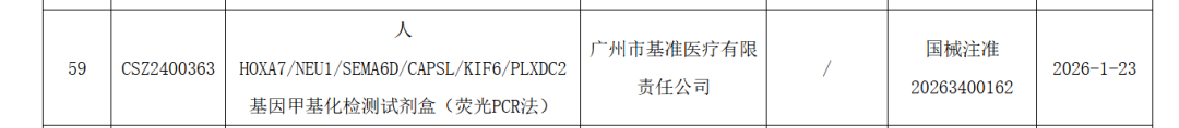 | 早筛网讯:近日,康圣环球旗下子公司——广州市基准医疗有限责任公司的人HOXA7/NEU1/SEMA6D/CAPSL/KIF6/PLXDC2基因甲基化检测试剂盒(荧光PCR法)(国械注准20263400162)正式获批!据悉,该试剂盒基于DNA甲基化检测技术,通过采集外周血即可实现胃癌相关基因甲基化水平的定性检测,适用于临床对疑似胃癌患者的辅助诊断。在全国多中心注册临床研究中,该试剂盒共纳入1543例统计样本,数据显示其用于胃癌辅助诊断的灵敏度达79.22%,特异度为85.27%。这是基准医疗第2款获批的基因甲基化检测产品,第1款为人类ONECUT2/VIM基因甲基化检测试剂盒(荧光PCR法),检测癌种为尿路上皮癌,于2024年1月获批。