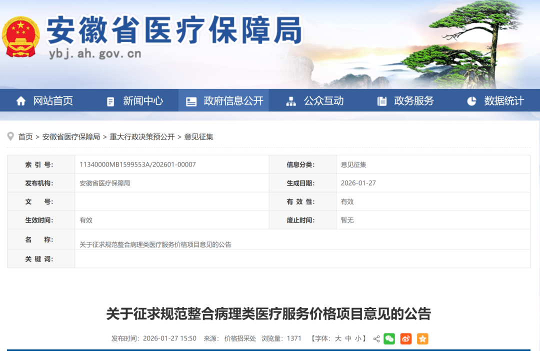 近期,国家医保局编制印发了《病理类医疗服务价格项目立项指南(试行)》(点击查看)。1月20日,国家医保局在北京举办了“价格立项赋能医疗科技创新发展分享活动”,其中就重点介绍了病理类医疗服务价格立项相关政策。 1月27日,安徽省医保局发布了《关于征求规范整合病理类医疗服务价格项目意见的公告》,为构建内涵边界清晰、适应临床诊疗、便于评价监管的医疗服务价格体系,并且对照国家医保局立项指南,对现行病理类医疗服务价格项目进行了梳理整合并制定价格。 整合后病理类医疗服务价格项目表(征求意见) 1.对照国家医保局《病理类医疗服务价格项目立项指南(试行)》,安徽省医保局同样将病理项目项目规范整合为28项、加收项3项、扩展项2项; 2.“加收项”指同一项目以不同方式提供或在不同场景应用时,确有必要制定差异化收费标准而细分的一类子项。 3.“扩展项”指同一项目下以不同方式提供或在不同场景应用时,只扩展价格项目适用范围、不额外加价的一类子项,子项的价格按主项目执行。 4.单独设立了病理诊断价格项目,更好体现临床诊断金标准的劳务技术价值,在“术中冰冻”、“限时处理(24h)”等细分场景,还设置了加收项; 5.通过执行“缺数减收”政策,鼓励切片的数字化扫描并推动云存储,鼓励数据汇聚赋能创新; 6.多重染色:作为加收项,当同切片使用两种及两种以上染色技术时,可以按照计价单位每切片执行200%价格的收费; 7.分子病理:高通量测序法(NGS)检测费,封顶费用10000元(每增加一个面板,按照75%加收,换算即总共8个面板及以上),实时荧光聚合酶链反应法(PCR)检测费,封顶费用4686元(每增加一个位点,按照60%加收,换算即总共23个位点及以上)。 附件: 1.整合后病理类医疗服务价格项目表(征求意见稿) 2.废止医疗服务价格项目表(征求意见稿) 3.整合后医疗服务价格项目映射关系表(征求意见稿) 点击文末阅读原文查看下载相关附件 |
