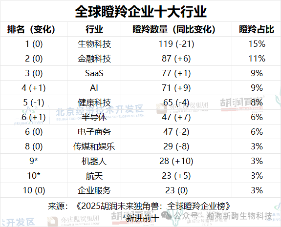 近日,全球权威创业榜单编制机构胡润研究院正式发布《2025胡润未来独角兽:全球瞪羚企业榜》