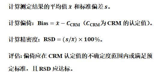 实验设计:选择与分析物、基质匹配的有证标准物质。在重复性条件下,独立制备并测定至少6份CRM样品。