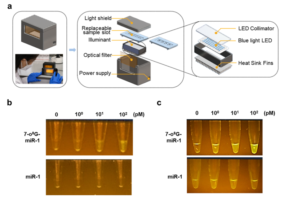这项技术最令人兴奋的地方不仅在于“准”,更在于“快”与“便”。 为了日后更好地走向临床应用,研究团队利用3D打印技术同步开发了一款低成本便携式检测设备 : 极简操作,即时读取: 整个反应在室温下即可完成,无需大型实验设备。结果不仅肉眼可见,还能通过智能手机拍照分析。 成本极低:该便携设备的造价仅约10美元,功耗不足1W 。 床旁检查(POCT)的新选择: 凭借出色的抗干扰能力,该系统能直接从细胞提取物中精准检测目标。这为资源匮乏地区的临床诊断、家庭健康监测以及现场筛查提供了全新的可能。