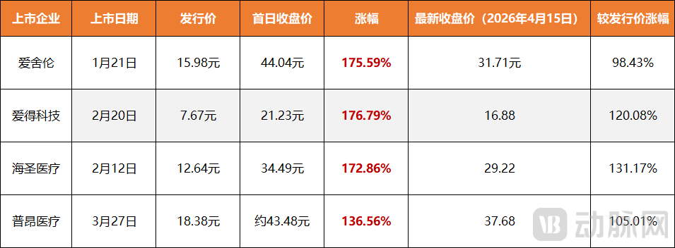 近日,港股疫苗龙头艾美疫苗发布公告,正式向北交所申请A股上市,若顺利推进,艾美疫苗将成为港股回北交所上市的第一股。 事实上,这并不是一个看似“合理”的决定:一方面,当前市场的主流趋势是A股企业赴港上市,而从港股回归A股的少之又少,目前已披露的成功案例不到10起;另一方面则是在于交易市场的选择,根据公开信息整理,港股企业回A上市目前主要集中在主板和科创板,比如百济神州、君实生物、康希诺等,“回A”都是选择科创板,北交所几乎“无人问津”。 所以,此次艾美疫苗的逆向选择,也引发了市场对于北交所的高度关注。不过走近才发现,当前的北交所俨然已成为医疗企业争先IPO的新阵地。 图1.2026年一季度已成功上市医疗企业 根据公开资料整理,2026年一季度国内医疗领域已有10家企业成功上市,其中登陆北交所的有4家,分别是爱舍伦、爱得科技、海圣医疗和普昂医疗,上市数量与火爆的港股持平。另外在排队上市企业方面,北交所目前有16家医疗标的正在审核,虽然数量不及港股,但仍高居A股第一,并且近期上升趋势明显。 图2.2026一季度A股各大交易板块上会数量情况 如果再放大到整个行业来看,北交所更是表现抢眼。2025年,北交所共受理176家企业上市申请,较2024年的66家飙升167%,并大幅超过沪深其他板块合计的124家。进入2026年一季度,沪深北三大交易所共迎来46家企业首发上会,其中北交所以33家上会企业数量独占鳌头,占比高达71.74%,成为一季度IPO审核的绝对主力。截至2026年3月20日,北交所存量上市公司数量已正式突破300家大关,毫无疑问已成为国内IPO市场最具活力的增长极。 于是,一个关键性疑问正在行业迅速发酵:北交所为何会强势崛起?医疗企业又为何选择在当下扎堆“北上”?这背后到底透露着怎样的资本逻辑与IPO趋势的变化? 01 医疗企业为何集体“改道”北交所? 2021年11月15日,北交所正式开市,主要是瞄向一批“专精特新”企业。开市当天,北交所就一次性“收获”81家上市企业,其中71家为新三板精选层平移企业,另外10家则为直接在北交所上市的新股。作为重点覆盖领域,医疗企业在北交所首批上市标的中占据10席,三元基因、诺思兰德、森萱医药等都在内。 图3.2021-2026年Q1北交所上市医疗企业数量 此后几年,北交所医疗股就跟随行业发展一样,逐渐从最高点降到谷底。2022和2023两年,北交所共收获12家上市医疗企业,显示出极高的市场扩容性;但进入2024年和2025年,情况又急转直下,连续两年北交所都有且仅有一家上市企业,分别是2024年的海昇药业和2025年的丹娜生物。 图4.北交所目前排队审核上市医疗企业情况(数据来源:交易所官网) 终于在2026年,这一局面迎来了反转,仅开年第一季度就收获了4家上市医疗标的,数量已是过去两年总和的一倍。此外,目前排队候审的医疗企业还有16家,而按照目前北交所的审核速度和节奏,他们都有望在今年年内完成上市进程。 那么,这一变化是因何而起的呢?要回答这一问题,我们就必须以医疗企业的上市诉求来反向推导。 首先第一点就是上市的成功率。事实上,港股火爆很大一部分原因是因为“18A”允许一批未盈利生物科技企业上市,虽然北交所主要面向盈利性医疗企业,但近年来,随着科创板第五套标准重启,其也在逐步放宽对未盈利性企业的上市限制,开始重点关注和支持一批具备核心技术且成长性突出的创新型医疗企业。 图5.北交所“四套”上市标准 以2025年8月成功在北交所上市的康乐卫士为例,因产品还未完全商业化,所以其长期处于亏损,甚至在上市前的半年内仍然亏损超过1亿元,但它仍满足北交所的第四套上市标准,即“预计市值不低于15亿元,最近两年研发投入合计不低于5000万元”,这也因此使得康乐卫士顺利成为北交所首家采用“标准四”上市的创新企业。据悉,目前北交所近300家上市企业中,仅有5家采用了第三套或第四套标准,其中有3家都是生物医药企业,除康乐卫士外,还有诺思兰德和星昊医药。 除了放开闸口,北交所的审核效率也在大幅提升。刚刚过去的3月,北交所便有12家企业过会,这创下了其成立以来单月上会数量的新高。具体到医疗领域,目前审核最快的是刚上市的海圣医疗,从受理到过会仅用时162天,创下年内最快审核纪录。这很大程度上是得益于北交所推出的“直联机制”,即北交所和新三板内部通过对直联企业全链条审核、监管、服务工作进行集中归口管理,支持直联企业挂牌满一年后迅速完成发行上市,这大大节省了企业上市的时间成本,也大幅降低了上市费用。 其次要考虑的是交易所本身的估值与流动性。对比港股,以北交所为代表的A股主要是“机构+散户”双轮驱动,因此A股上市企业通常具有更高的估值水平和流动性。根据最新数据统计,A股估值通常比港股高出20%~40%,而在流动性方面,A股日均换手率通常为港股的3~5倍。以2025年12月从港股登陆科创板的百奥赛图为例,其A股股价较发行价上涨超2倍,较港股溢价超过90%。 这其实非常重要。一方面,高估值意味着在同等盈利水平下能募集到更多资金,能够为后续的研发投入和商业化进程提供充足“弹药”;另一方面,良好的市场流动性也能够为企业再融资、并购整合以及早期投资者的有序退出提供顺畅的市场环境,推动其再成长。所以,对于一批尚未盈利或处于研发关键阶段的医疗企业而言,选择估值和流动性更优的市