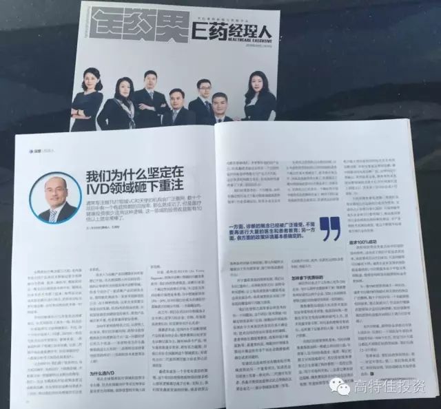 在精准医疗概念提出之前,业内通常将不同产品或技术依据监管方和领域分为器械、服务、制药等,精准医疗这一概念的出现将原本碎片化、隔离化的各类技术串联了起来,按照适应症或者临床路径进行划分,把所有目标都是为了更好地诊断、治疗和分析的技术统一归纳起来。 中国的精准医疗与其他发达国家相比,在发展阶段上基本一致,但是在一些基础研究方面稍微落后。不过,由于中国市场和人口因素,一些应用国内甚至比国外更领先。整体来看,一些基础科研子领域已经有突破,比如二代测序和高通量测序等,但是细胞治疗、大数据分析等方面仍在探索前行。 本文作者为高特佳投资集团执行合伙人王海蛟,刊登于《E药经理人》。 王海蛟 过去2年中,我们看了很多项目,分为基因测序、免疫治疗、干细胞存储、大数据分析、智能硬件以及把靶向药物等。我们一直认为精准医疗的前期是要完成精准诊断,没有很好的诊断结果谈不上治疗,所以我们对IVD领域的关注度非常高。 如果说我本人与诊断产业的渊源在10年前便已开始,在从校园跨入社会的阶段,我的主要研究方向就是体外诊断领域。我参与创办了一家诊断产品的研发企业,期待它能发展成为一家技术创新型的公司。由于种种原因,我创办的企业未能走到今天,但是6年的创业经验,让我深深感受到做研发的艰辛,要把产品做出来不难,但是要做得更加好就很难。 2014年来到高特佳之后,以投资人的身份,我们经常被问到,高特佳投资精准医疗的逻辑是什么?这一问题的背后有几个讯息:一是高特佳为什么能够提前这么久布局?二是高特佳如何拿到优质的项目?三是高特佳未来想要怎么样? 为什么选IVD? 现在全球精准医疗领域的投资非常火爆,但是在细胞治疗等关注和争议都非常大的领域,高特佳为什么暂时不纳入投资范畴? 目前,高特佳对IVD(In Vitro Diagnostic,即体外诊断)领域的兴趣非常浓烈。我们的投资逻辑认为,诊断行业是一个确定性的高增长市场,从过往几年的诊断市场增速来看,IVD领域保持在15%-20%,IVD市场已经成为全球医疗器械最大的细分市场。 在此之外,我们会关注IVD领域真正具有核心竞争力的企业。否则,市场是高速增长的,但是跟你有什么关系? 鑫诺美迪是国内分子诊断领域产品线最全的企业;博奥赛斯以化学发光诊断仪器为主,拥有80多个产品,每年报批数量非常多,研发实力超强,目前已经在全国做到这个领域前五;安诺优达的二代基因测序的能力在业界已经很明显。 鑫诺美迪是一个非常有意思的案例,这个项目的投资将高特佳投资的很多核心逻辑都呈现了出来。实际上,我们投资鑫诺美迪的时候,很多投资公司都在接触他们,非常看好他们的产品力。但是鑫诺美迪过去存在一个比较明显的短板是销售能力与产品力不匹配,这让很多机构颇为无奈。销售能力的短板在其他机构看来是无法弥补的项目缺陷,但是高特佳最终拿了下来。原因是什么? 我们经常思考一个的问题是,如何在确定性行业之下最大限度的提高投资的效率?行业是确定性的,但是企业总会有各种各样的缺点和短板,那么问题的关键就在于作为投资者,你除了给钱还能给什么? 对于鑫诺美迪的销售短板,我们认为自己能把这个短板给补上。在两轮投资之后,高特佳牵线搭桥,让上海其观贸易与鑫诺美迪达成全面合作,而其观贸易在全国三甲医院的覆盖和下沉能力很强。 我们在投资之前常常必须思考的问题是,这个项目(技术领域)的确定性有多高?比如,细胞治疗领域的发展在今天来看仍然是存在许多不确定性的,例如技术应用仍存在许多技术性障碍,患者和医生都需要教育,政策环境不够成熟等等。最重要的是,细胞治疗领域发展的不确定性并非个别企业能够做到确定或者回避的。 安诺优达是高特佳在精准医疗领域投资的另一个重要项目,安诺优达目前身上有着一堆光环:二代测序先发者、首批具备开展高通量测试试点资格的五家企业之一、细分领域排名第三等等。 在安诺优达出现投资机会的时候,以往考虑投资类似标的公司时候的诸多不确定性基本都确定了,技术被市场认可、国家高通量资质出来了,政策规定了哪些领域和症状可以开展业务了。发展至今,安诺优达已经是在一个确定性市场中拥有先发优势的企业了,相对于同行业其他高市值企业而言,安诺优达仍有很大的提升空间。此外,安诺优达团队非常年轻、非常有战斗力。 怎么拿下优质标的 确定性行业之下又有核心竞争力的企业,为什么高特佳能够拿下来?博奥赛斯和安诺优达两个企业,实际上在高特佳投资之前已经在细分市场有一定的地位。 博奥赛斯是我主导投资的项目,博奥赛斯的创始人有非常丰富的创业背景和技术背景,他是国内第一批做化学发光免疫诊断的研究人员,博奥赛斯的技术底蕴非常丰厚,对行业的理解非常到位,也积累了足够多的人脉、关系和客户资源。 在我们的投资团队看来,当时的博奥赛斯就如同一株破土而出的一个小苗,只需要人适当的给他浇水、施肥,帮他把握方向和战略即可。我们投资博奥赛斯之后主要做了两件事情:一是给它浇水,就是给它资金,用于市场的开拓;二是帮它聚焦制定战略,博奥赛斯原有的产品包括食品检测、快速检测等等,我们建议他们聚焦只做大型实验室用的化学发光免疫诊断仪器,对标对象就是雅培诊断,做中国最好的免疫诊断厂商。这