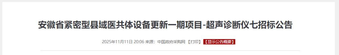 11月11日,安徽省卫健委连发了三次超声设备采购公告,共计207台彩超,预算金额合计达2.137亿元,且都不接受进口产品。
