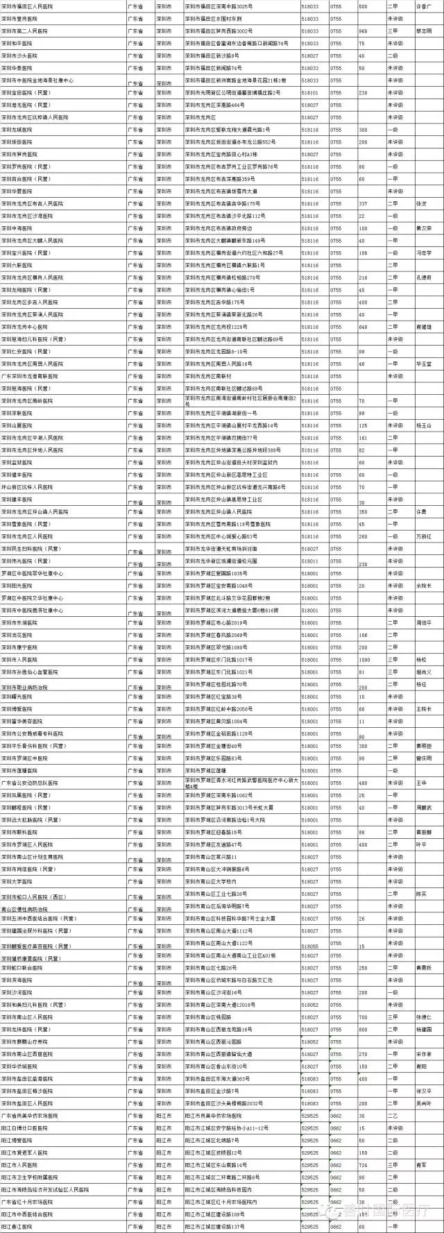 广东省所有医院明细!包含了医院的床位、级别、院长等信息!