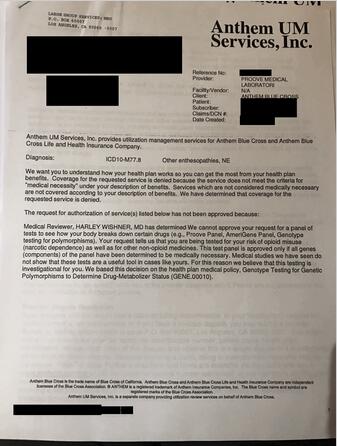 该公司可能会在周一向保险公司提交“阿片类风险检测”的费用账单,在下周一提交“疼痛感知”检测的费用账单,等等,其能证明患者曾多次接受检测。组合账单通常在7,000至10,000美元范围内。