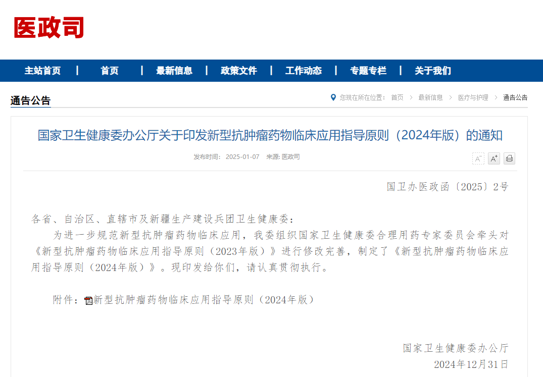 《关于印发新型抗肿瘤药物临床应用指导原则(2024年版)》